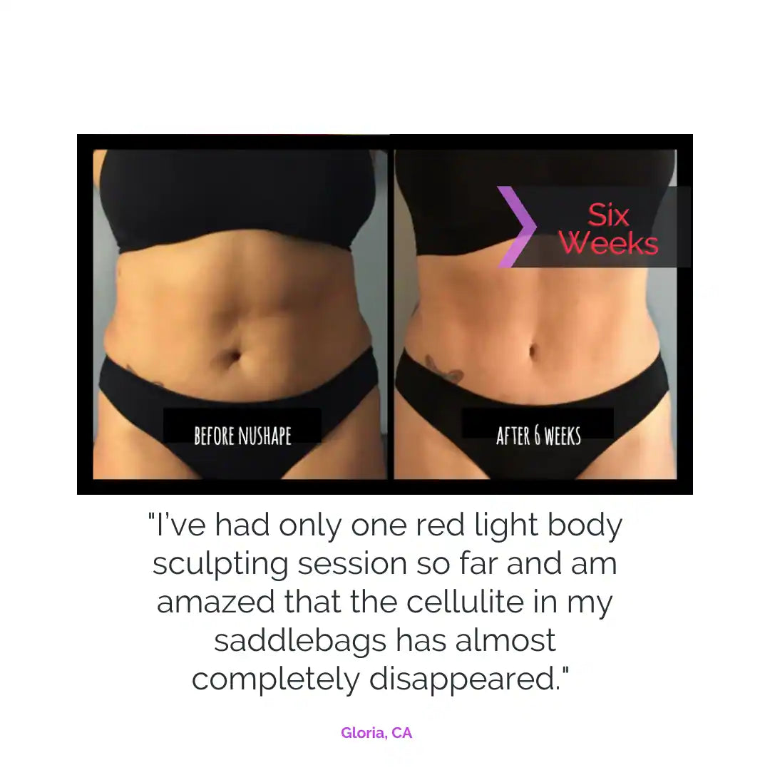 "I’ve had only one red light body sculpting session so far and am amazed that the cellulite in my saddlebags has almost completely disappeared."